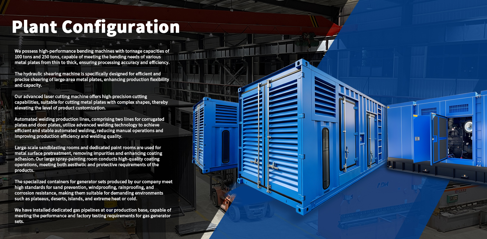 It boasts generator sets assembly area, customizedcontainer
